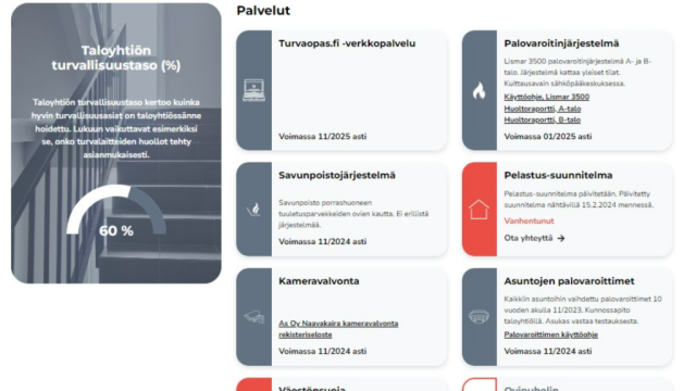 Tarjoamme kiinteistön turvajärjestelmät taloyhtiöille, yrityksille ja yksityisille pääkaupunkiseudulla ja Päijät-Hämeen alueella. Monipuolisesta tuotevalikoimastamme löytyvät ratkaisut kiinteistösi turvallisuuden takaamiseksi. Paloturvallisuusjärjestelmät, hälytinjärjestelmät, kameravalvontajärjestelmät ja paljon muuta. Turvajärjestelmien suunnittelu, asennus ja huolto.