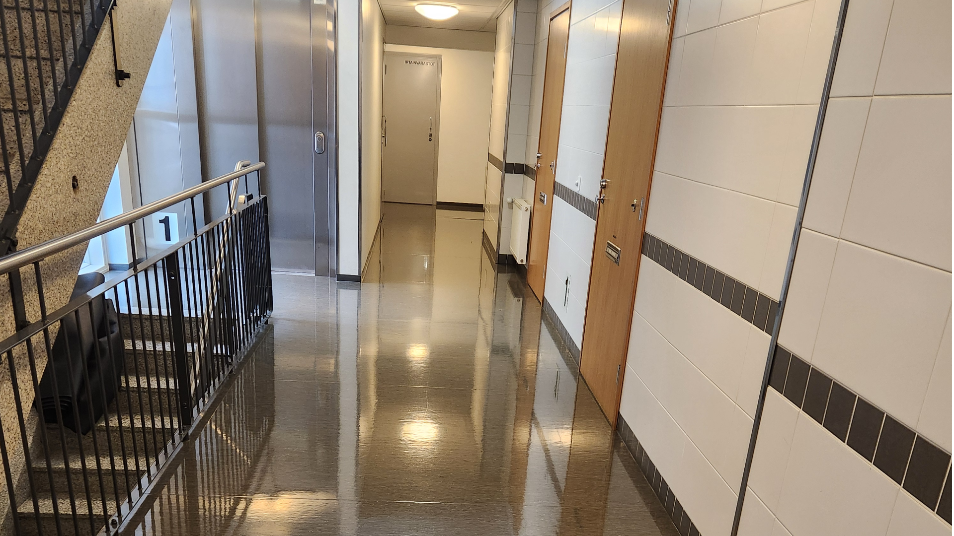 Lahtelaisessa taloyhtiössä porraskäytävien siivous oli pitkään retuperällä – asukkaiden tyytymättömyys kasvoi, ja taloyhtiön hallitus päätti kokeilla uutta ratkaisua. A&M Kiinteistöpalvelut Oy:lle annettiin kaksi kuukautta aikaa näyttää osaaminen: nyt piti tulla puhdasta. Kahden kuukauden kohdalla luvattua katselmusta ei tarvittu. Hallitus ja asukkaat olivat nimittäin niin tyytyväisiä A&M:n työnjälkeen, että yhteistyötä päätettiin jatkaa heti. Yli kolme vuotta myöhemmin sama siivoustiimi huolehtii edelleen kohteen siisteydestä. Perussiivouksen lisäksi A&M on toteuttanut kohteessa muun muassa vanhojen vahojen poistoa ja uudelleen vahausta sekä muutamia vaativia erikoissiivouksia. Laatu, johdonmukaisuus ja palveluasenne ovat luoneet pysyvän luottamuksen asiakkaan ja palveluntarjoajan välille.