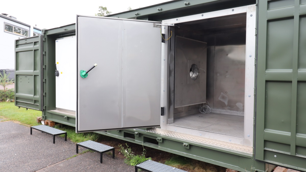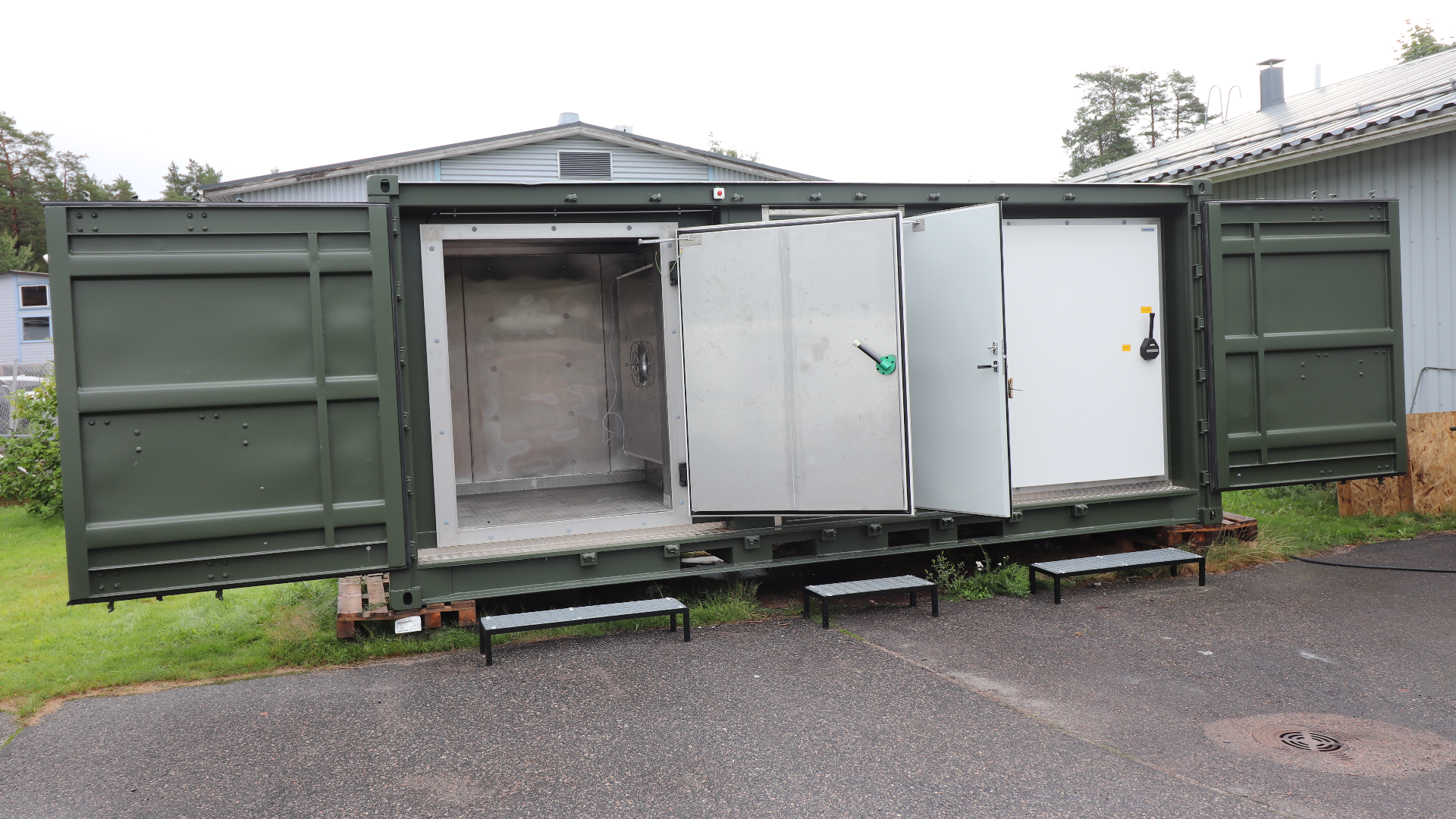 We delivered a 20 ft container, that consists of three rooms: - engine compartment - cold test chamber - hot test chamber Construction is based on standard street container.