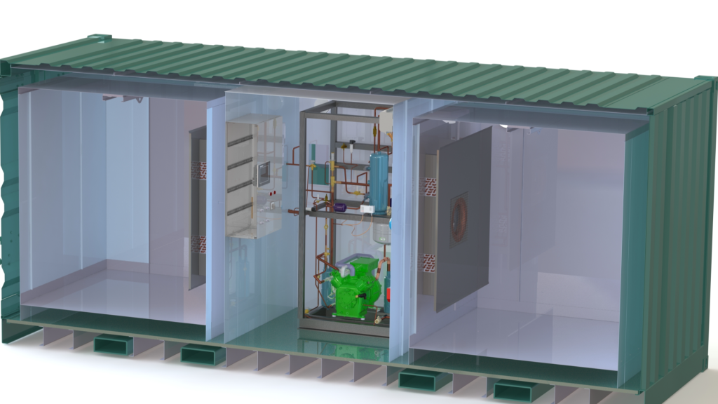 Siirrettävä Testikontti, jossa on kaksi testikammiota. Ilmasto: -57...80˚C, 10...80%RH