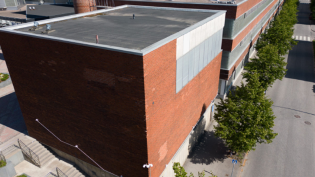 Kohteessa saneerattiin julkisivujen tiilimuuraukset lämmöneristeineen sekä toeutettiin vesikattosaneeraus