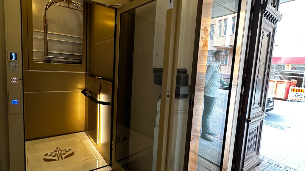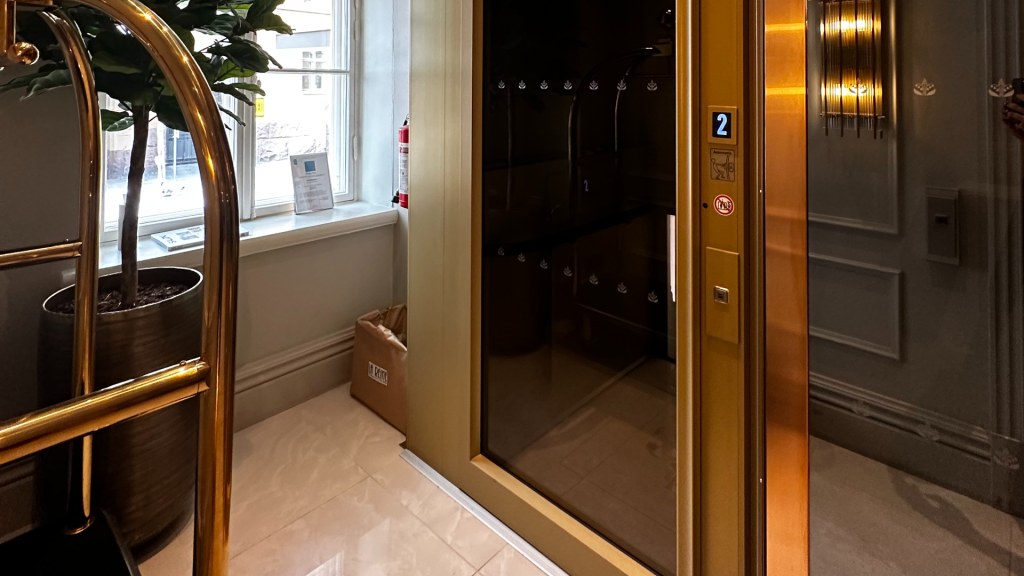 Hotellin pääsisäänkäynnin yhteyteen suunniteltiin arkkitehdin toiveisiin räätälöity kullan värinen Cibes Air kevythissi, jossa lattia päällystettiin hotellin ilmeeseen soveltuvalla materiaalilla, jossa on hotellin logo. Kevythissi palvelee sisääntulosta vastaanottotasolle sekä liikuntaesteisiä että hotellin työntekijöitä, kun he siirtävät painavaa matkalaukkurullakkoa tasolta toiselle täynnä arvostettujen hotellivieraiden arvoesineitä.