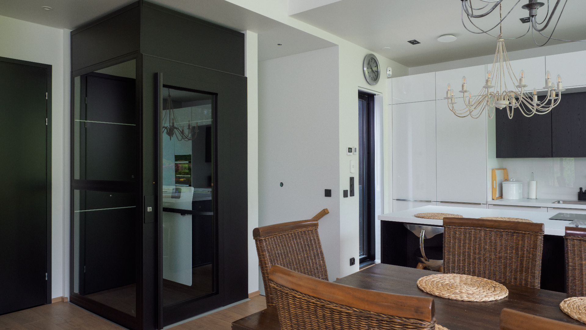 Cibes Air kotihissi tehtiin uudehkon talon hissivaraukseen ja sovitettiin talon sisustukseen.