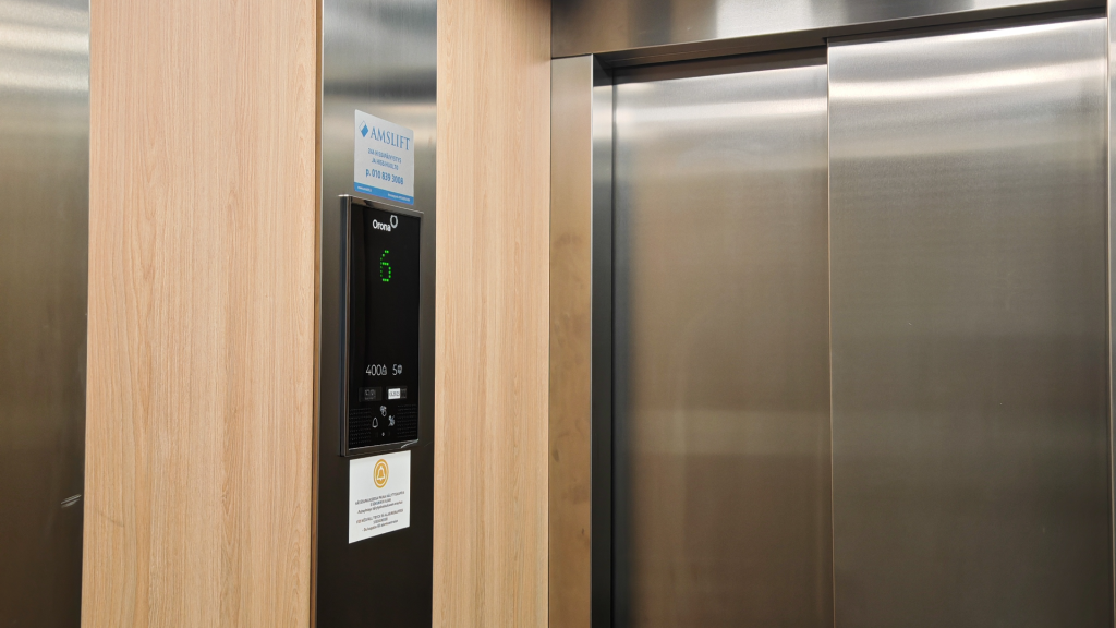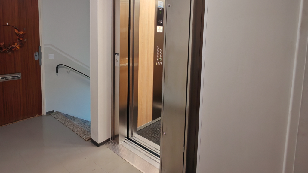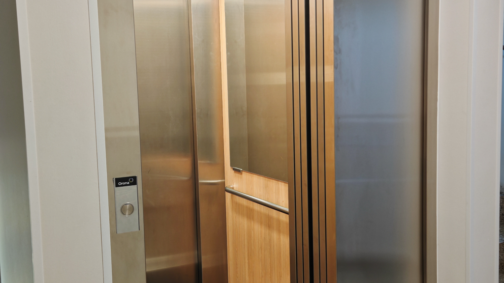 Uusi Orona hissi täytti asiakkaan tarpeen tilatehokkaasta ja esteettömästä hissistä vanhan esteellisen kääntöovellisen hissin tilalle, johon päästäkseen joutui kulkemaan puolen kerroksen matkan portaita pitkin.