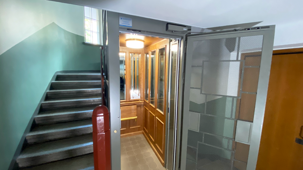 Amslift jälkiasennushissi räätälöitiin tässäkin kohteessa tilaajan toivomuksesta laadukkailla materiaaleilla ja vanhan talon ilmeeseen sopivaksi. Hissiasennus paransi kiinteistön arvoa, käytettävyyttä sekä esteettömyyttä, jotta kaikki ikään ja toimintakykyyn katsomatta pystyisivät asumaan ja vierailemaan tässä upeassa rakennuksessa.