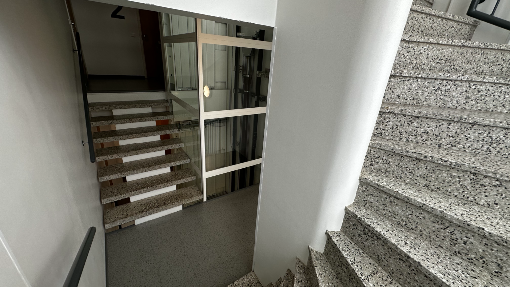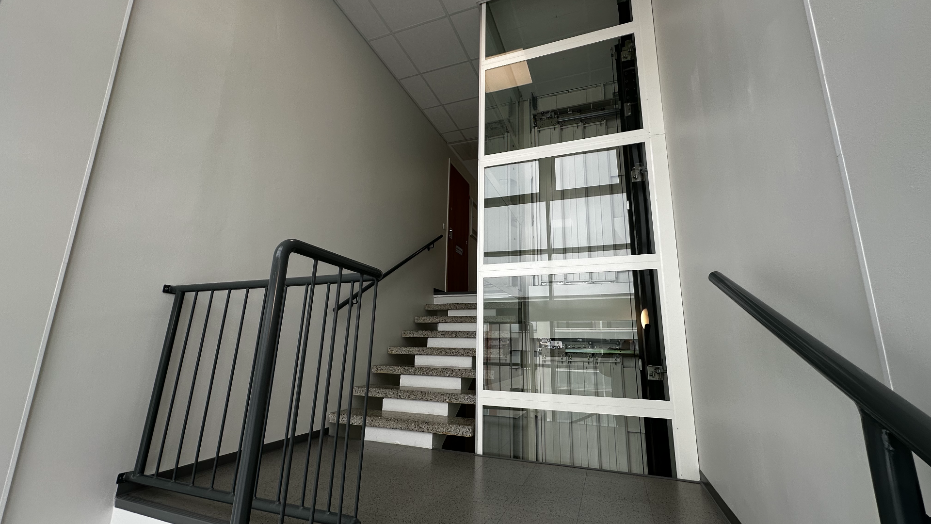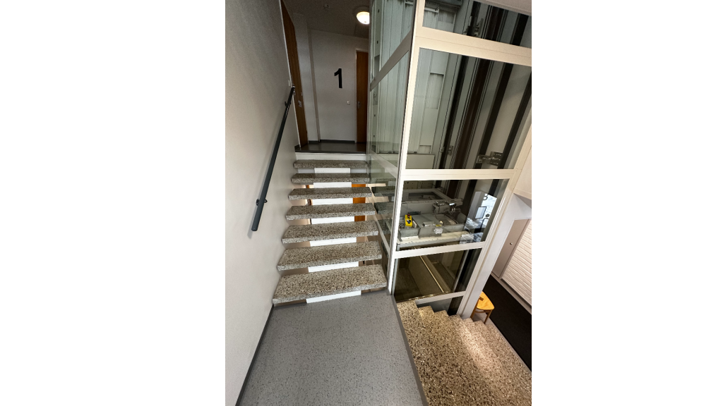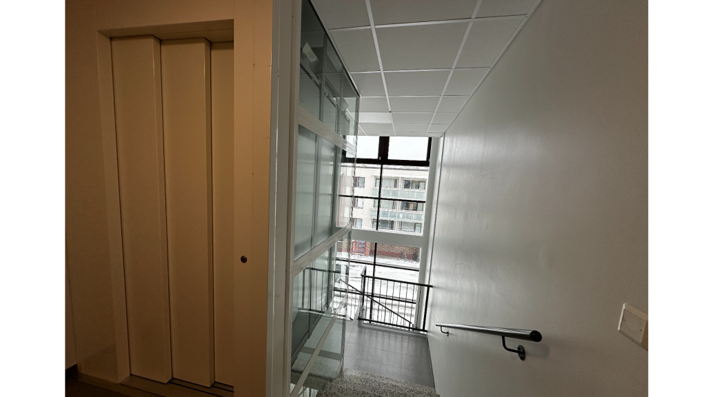 Tässä kohteessa laajensimme porrashuonetta uudella porrastornilla ja toteutimme automaattiovellisen lasikuilullisen Amslift jälkiasennushissin toisen porrassyöksyn tilalle, jolla saatiin mahdollisimman suuri automaattiovellinen hissi käytettävään tilaan. Joensuussa valtion 35% hissiavustuksen päälle oli mahdollista hakea 10% kaupungin lisäavustusta, jolloin taloyhtiölle jäi kustannuksista maksettavaksi vain 55%. Lue lisää Joensuun hissiavustuksista: https://www.joensuu.fi/korjausrakentaminen