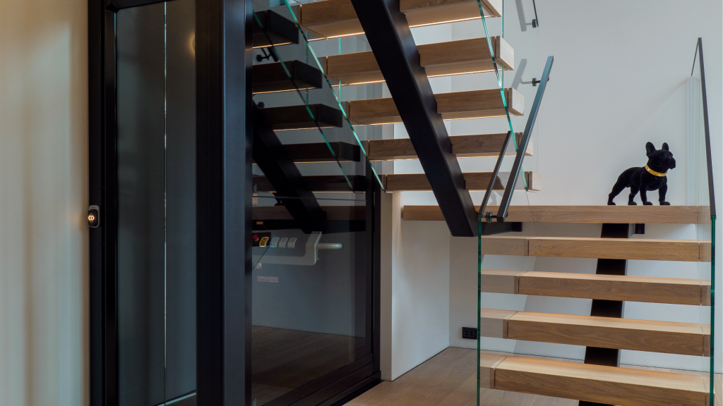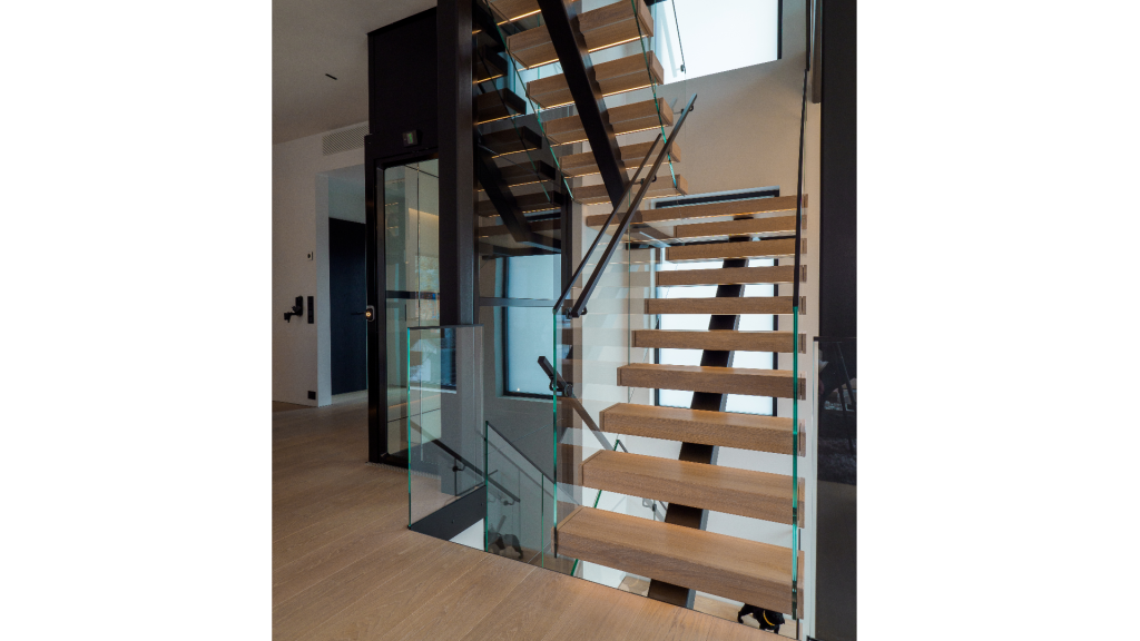 Asunnossa on esimerkiksi keittiö toisessa kerroksessa, jolloin ruokakassien kantaminen keittiöön helpottuu kotihissin avulla. Hissi saatiin suunnitteluvaiheessa sovitettua hienosti keskeiseen paikkaan, josta hissillä matkustaessa on hienot näkymät ja lasisen kuilurakenteensa sekä lasisten pariovien ansiosta hissi istuu huomaamattomasti muuhun sisustukseen. Lisätietoja videolta: https://youtu.be/7aQz7KkcTjE?si=j1TKfF3GVofClD3P