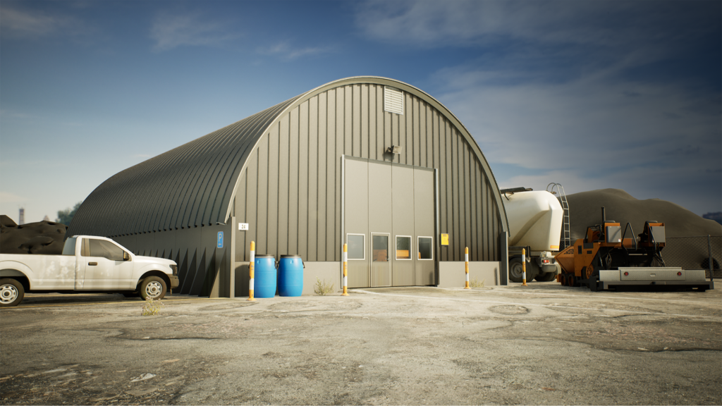 Hallien visualisoinnit toteutettiin maisemoituina erilaisissa käyttöympristöissä, jotta niiden monikäyttöisyys saataisiin hyvin esille. Kaikki hallikuvat tehtiin samasta kuvakulmasta, jotta myös niiden keskinäinen vertailu olisi asiakkaalle helpompaa.
