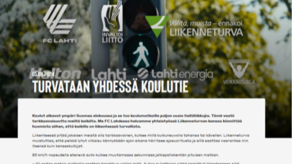 05 / 2024 VastuullisuusLiikenneturva - FC Lahti vastuullisuusohjelma