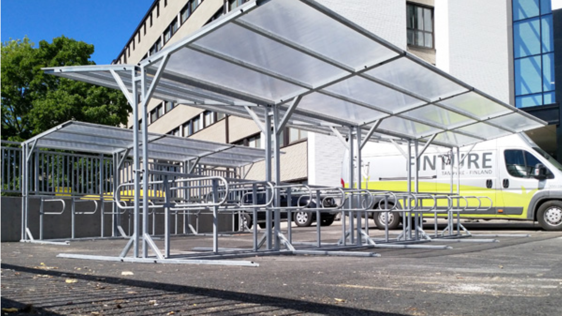 Finturen valmistamat katokset valikoituivat Turun yliopistollisen sairaalan pyöräparkkiin.