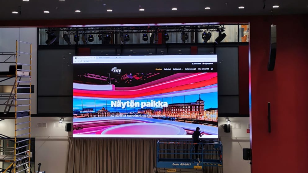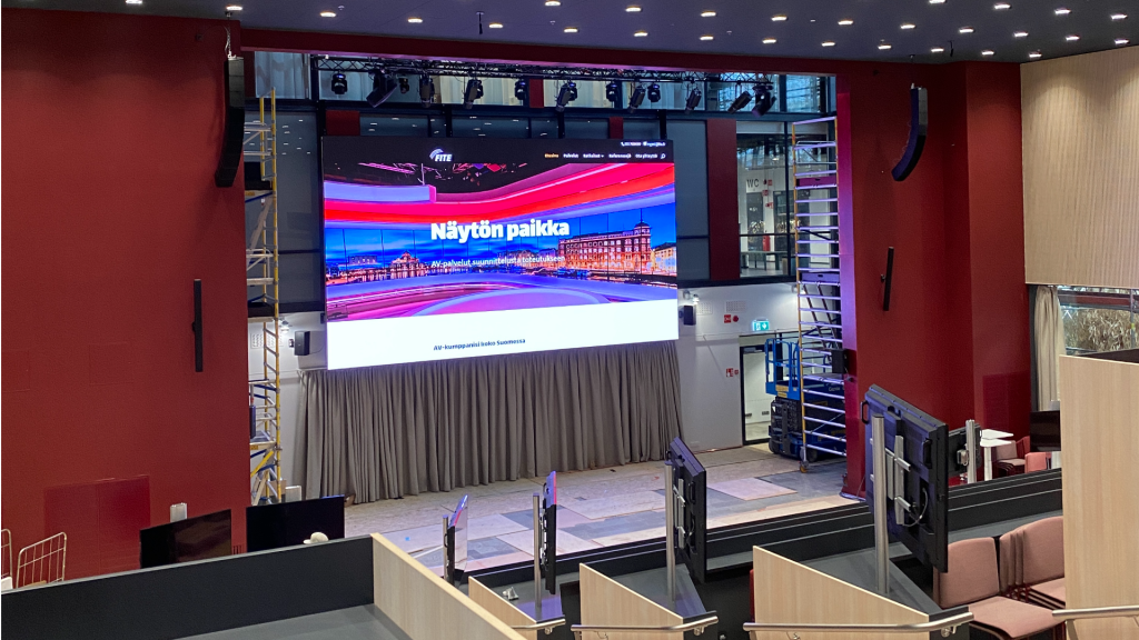 Asensimme asiakkaallemme Dustin Finlandille 30 neliöisen LED:in Helsingin Yliopiston Viikin Kampuksen uudistettuun 400-hengen auditorioon. Uuden tyyppien auditoriotila sisältää erilaisia alueita ja tasoja, jossa opiskelijat pääsevät osallistumaan opetukseen. Auditorio on myös muunneltavissa ryhmätyö- ja tapahtumatilaksi. LED-toteutus on sijoitettu ja mitoitettu tämä kaikki huomioiden niin , että jokaiselta salin paikalta näkyvyys on kunnollinen ja materiaaleista saa hyvin selvää.
