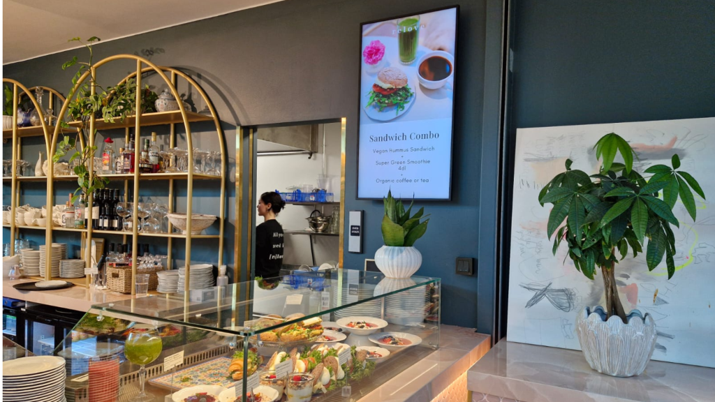 Menu- ja hinnastonäytöt moderniin kahvilaympäristöön