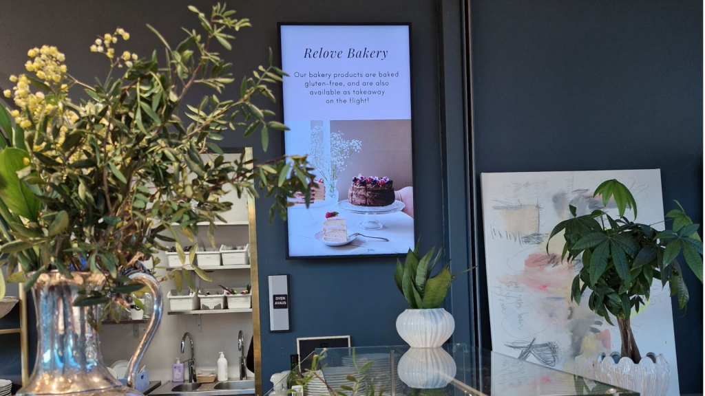 Relove on second hand & kahvilakonsepti joka ilahduttaa matkustajia kantakaupungin lisäksi nykyään myös Helsinki-Vantaan lentoaseman porttialueella (21–22). Kyseessä on maailman ensimmäinen lentoasemalle avattu second hand liike! Toteuttamamme menu- & hinnastonäytöt mahdollistavat perinteisiä menukylttejä paremmin mahdolliset muutokset ja menun vaihtelun. Asiakkaalla on käytössä Samsungin Magic Info järjestelmä, jonka kautta materiaalien päivittäminen ja aikatauluttaminen onnistuu nopeasti ja vaivattomasti.