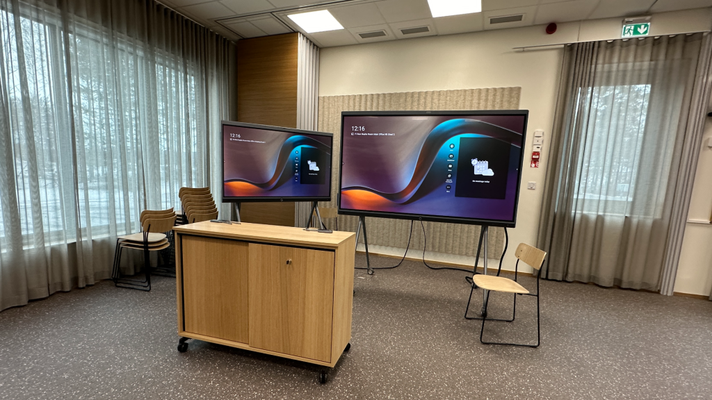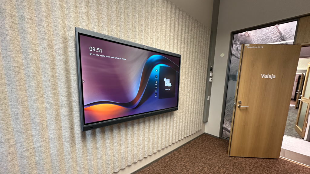 Asiakkaalla oli hyvä näkemys ja uskallus lähteä suoraan ”seuraavan sukupolven” ratkaisuun, jossa langattomuudella ja kosketusnäytöillä on vahva rooli. Tuotemerkiksi valikoitui Yealink ja kaikkiin neuvotteluhuoneisiin asennettiin Meetingboard Teams laitteistoja, joko 65 tai 86 tuumaisena. Suurimpaan osaan huoneista tarvittiin myös langallinen liitäntäpiste työasemille ja ratkaisu tähän toteutettiin Ochno Power Conference tuotteella, joka toimintavarmuudellaan ja tyylikkyydellään on kerännyt kehuja käyttäjiltä. ”Wow -efektiä” hulppeisiin tiloihin antaa aulaan sijoitettu 98” kosketusnäyttö, jolla esitellään tehtaan toimintaa. Samoin jaettavaan monitoimitilaan saatiin mahtava äänentoisto ja kuva kahdella Artomen M20 laitteella. Lisäksi toteutukseen kuului ovenpielinäytöt (Evoko) sekä erityyppisten Lounge tilojen näyttöratkaisut (65-86”). Lounge tilojen esitysratkaisuna toimii langaton Yealink Roomcast. Asennusaika: 1 vk Neuvottelutilat : 27 Monitoimitilat: 4 Lounge - tilat: 8