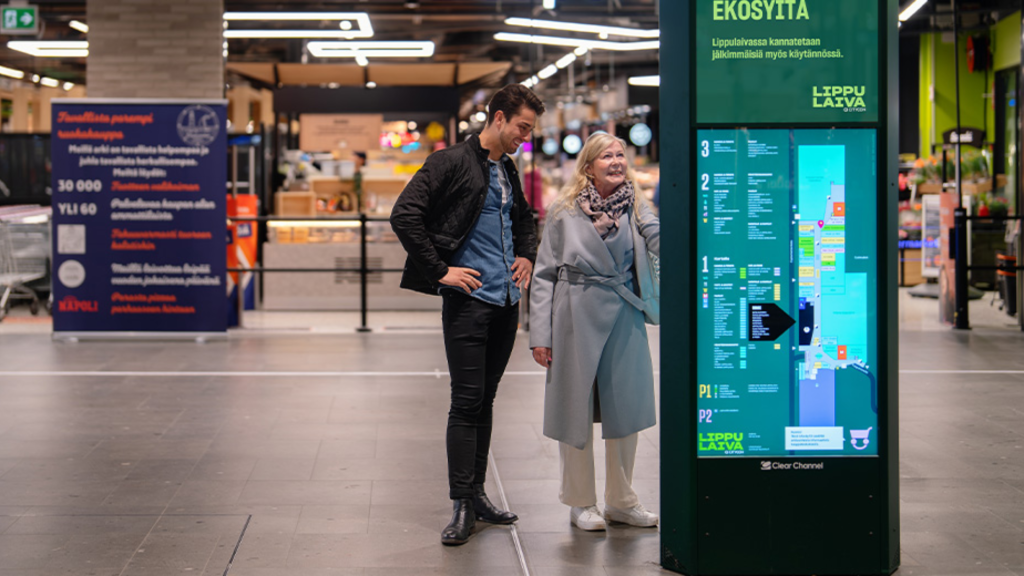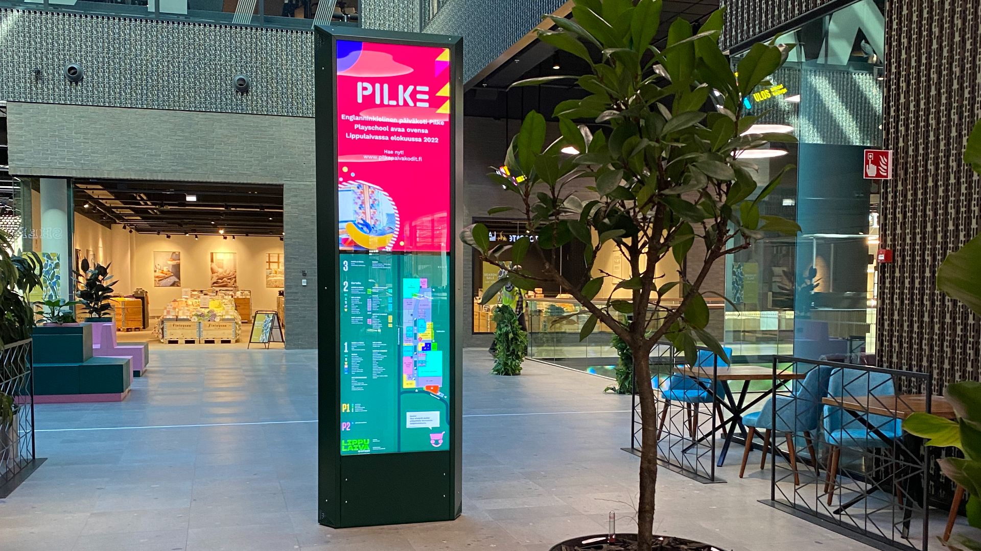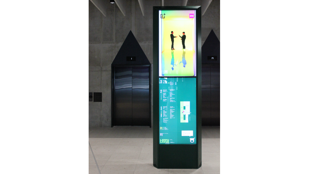 Lippulaiva on Espoonlahden upouusi kaupunkikeskus, jonka mainos- ja opastepylonit toteutimme Clear Channellin kanssa yhteistyössä. Tämä kohde on loistava esimerkki toteemien mahdollisuuksista ja muokattavuudesta. Nämä toteemit ovat kaksi-puoleisia ja niissä 55 tuumaiset näytöt on sijoitettu päällekkäin. Myös toteemien väri ja muotoilu on toteutettu asiakkaan toiveiden mukaisesti kauppakeskuksen tyyliin sopivaksi.