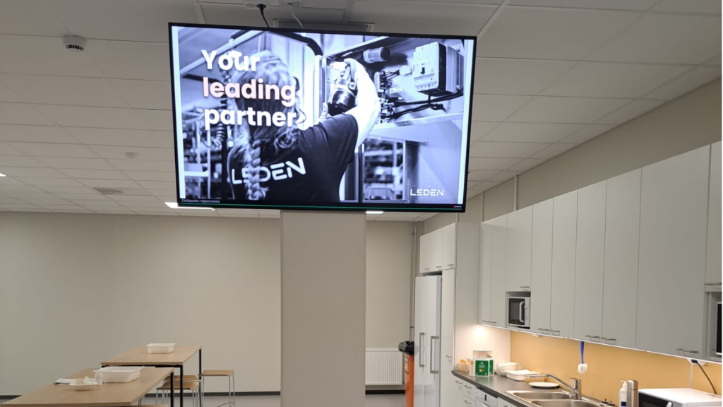 Toimitimme ja asensimme asiakkaallemme Leden Groupille 8 kpl infonäyttöjä yrityksen sisäiseen viestintään. Näyttöjen sisältöä hallitaan Valotaliven kätevällä sisällönhallintajärjestelmällä, joka on erikoistunut infonäyttöohjelmistoihin moderneille työpaikoille.