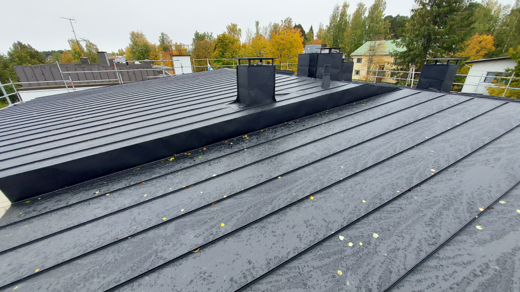 Saneerasimme syksyllä 2024 taloyhtiön vesikaton uudella konesaumapellillä