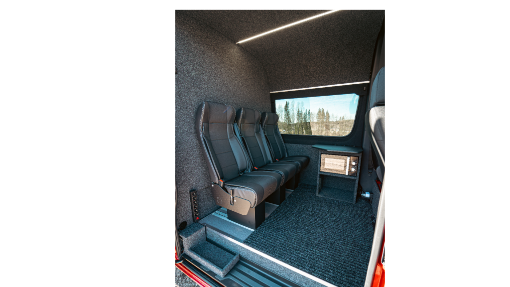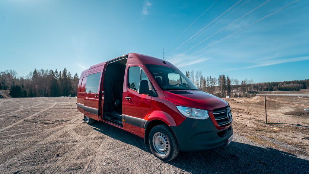 Kattokeskukselle varusteltiin sarja kirkkaan punaisia miehistönkuljetus Sprintereitä.