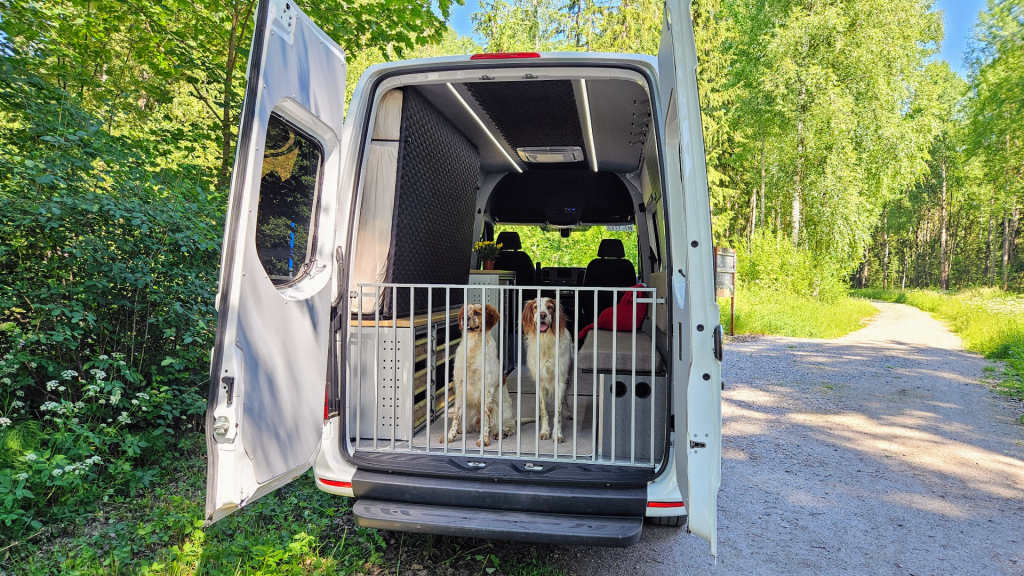 Tämä auto on täydellinen koiraharrastajan retkeilyauto, jossa sekä koirat että ihmiset viihtyy mainiosti.