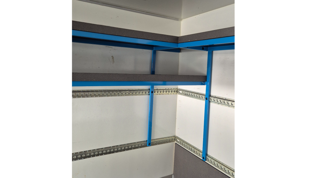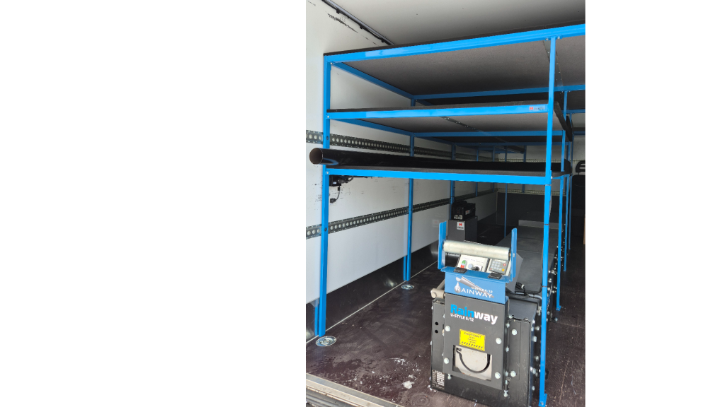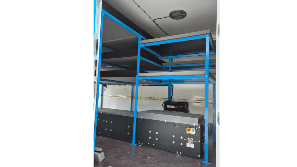 Autoon asennettiin sadekourukone kiinteästi. Kourukoneen etupuolelle sijoitetaan peltirullat ja takapäästä tulee valmista sadevesikourua juuri halutun mittaisena. Tilan käyttö maksimoitiin kourukoneen ympärille ja päälle mittatilaustyönä valmistetuilla telineillä syöksytorvien ynnä muiden vastaavien tarvikkeiden kuljetukseen. Auton alustaan asennettiin RST säilytyslaatikot maksimoimaan tavarankuljetukselle tila. Varusteluun lisättiin myös invertteri ja sidontakiskoja. Auto viimeisteltiin näyttävillä teippauksilla.