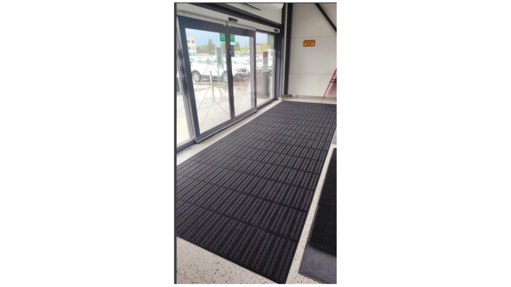Torikeskus on uusi moderni kauppakeskus aivan Valkeakosken ydinkeskustassa torin laidalla. Keskuksesta löytyy hypermarket, ruokapaikkoja, kampaaja, erikoisliikkeitä sekä posti. Sepeli ja liukkaus aiheuttivat jatkuvia häiriöitä liukuportaissa. Torikeskuksessa toistuivat talvisin liukuportaiden viat, kun terävä sepeli ajautui sisään asiakkaiden kengänpohjissa. Erityisesti liukuportaiden metallipinta yläpäädyssä oli altis vaurioille, koska ulko-ovi sijaitsee lähellä ja sään mukaan sisään kulkeutuu lunta, vettä ja jäätä. Liukupinnat olivat vaarallisen liukkaita ja tekniset häiriöt yleisiä. Kiinteistöasennus toimitti innovatiiviset Jaguar-matot, jotka pysäyttävät sepelin jo ennen portaiden alkua. Yläpäätyyn asennettiin erikoismatto ja tuulikaappiin harjaspinnalla varustetut sisämatot, jotka irrottavat hiekan kengänpohjista ja estävät veden jäämistä pinnalle. Nyt portaat kestävät talvet ehjinä, liukastumisriskit ovat pienentyneet ja sisätilat säilyvät puhtaampina.