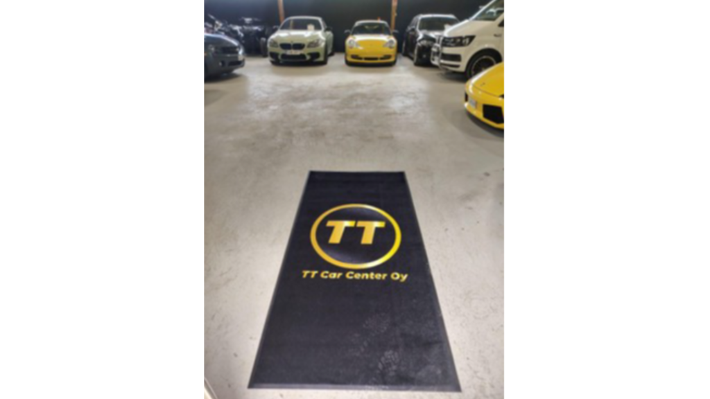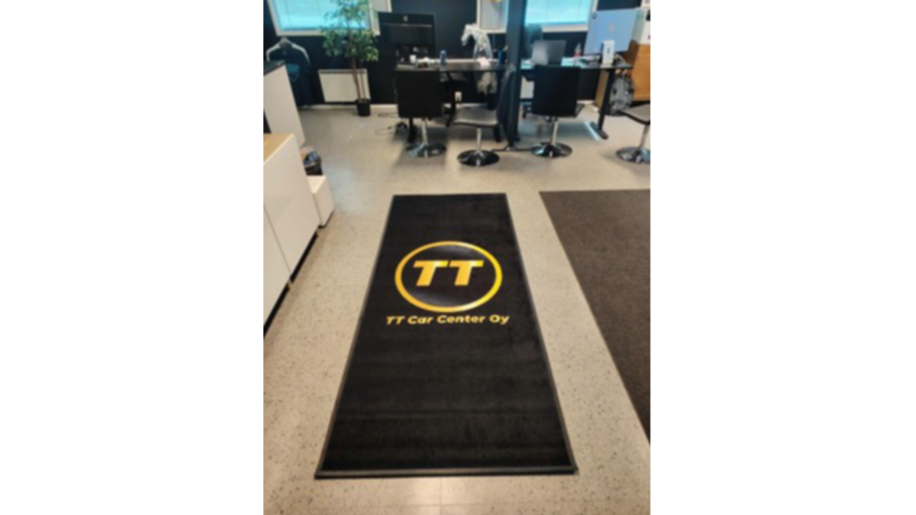TT Car Center Lahdessa etsi tyylikästä ratkaisua uuden toimitilansa sisäänkäynteihin ja asiakastiloihin. Uuteen toimitilaan tarvittiin kolme logollista mattoa ja kolme mustaa, yksiväristä mattoa täydentämään brändi-ilmettä. Asiakkaalla oli kiireinen aikataulu muuton vuoksi, ja toiveena oli saada matot paikoilleen nopeasti ennen avaamista. Reagoimme heti tilanteeseen, ja suunnittelimme sekä toimitimme matot vauhdilla. Lopputuloksena oli yhtenäinen ja edustava kokonaisuus, joka kohotti koko autoliikkeen ilmeen uudelle tasolle. Logomattojen ansiosta brändi näkyy heti sisään astuessa, ja mustat matot tuovat tilaan ryhtiä ja laatua. Asiakas oli erittäin tyytyväinen sekä lopputulokseen että nopeaan toimitukseen.