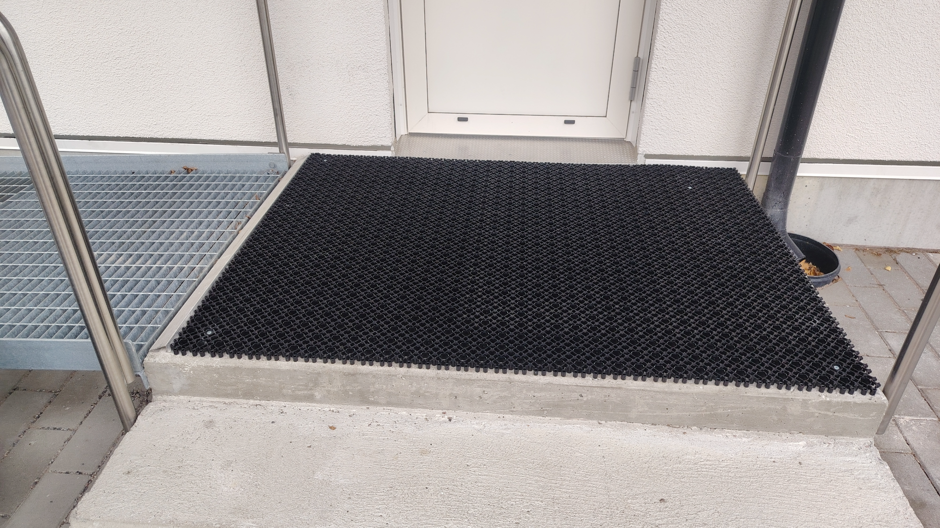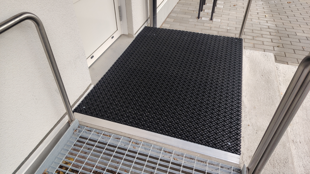 Lahdessa olevan kohteen sisäänkäynti oli liukas ja vaarallinen asukkaille. Ratkaisimme sen siistillä tuulikaappimatolla jonka reunaan lisäsimme alumiiniviistelistan, että maton yli on helppo mennä esimerkiksi rollaattorilla. Tilauksesta asennukseen meni viikko ja asennus hoitui asukkaita häiritsemättä keskellä päivää, koska betonia jouduttiin poraamaan emme halunneet herättää ketään porauksen ääniin. Asennuksen jälkeen laitoimme vielä kuvan isännöitsijälle hänen aikansa säästämiseksi ja Isännöitsijä oli tyytyväinen työn jälkeen! Meiltä nämä onnistuvat ammattitaidolla ja jopa nopeallakin aikataululla! Tuulikaappimattomme ovat Suomessa valmistettuja ja tulevat meille suoraan tehtaalta jotta vältämme turhat välikädet.