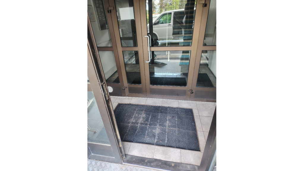 Taloyhtiön tuulikaapissa oli käytössä harjaksilla varustettu muovimatto jolla toivottiin kenkien puhdistuvan, hiekan pysähtyvän ja syvennyksen täyttyvän. No aikaa matto oli nähnyt ja täten täysin kulunut. Matto oli liian ohut mattosyvennykseen sekä ei se pysäyttänyt hiekkaa tai lunta ovelle vaan päästi kaiken läpi. Onneksi meiltä löytyi ratkaisu ongelmaan! Laitettiin kunnollinen tuulikaappimatto joka on tasassa lattian kanssa ja istuu syvennykseen hyvin. Nyt hiekka ja lumi jäävät ovella eivätkä päädy käytäville asti. Tämänkin Ari tuulikaappimatto on Suomessa valmistettu ja tehty kestämään pohjoisen oloja. Meille tuulikaappimatot tulevat suoraan tehtaalta ja niiden kustomointi onnistuu todella hyvin asiakkaan toiveiden mukaan!