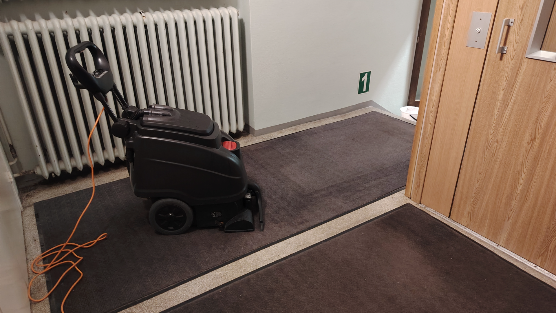 Omia käytävämattoja olisi hyvä huoltaa vähintään kerran vuodessa, että matot pysyvät kunnossa ja niiden teho olisi optimaalinen! Meillä pesu onnistuu suoraan kohteessa liikuteltavalla pesurilla joka pesee, harjaa sekä kuivaa maton. Laatu on todella hyvää ja sen on kyllä asiakkaammekin huomanneet. Tästäkin kohteesta tuli kehuja mattojen siisteydestä.