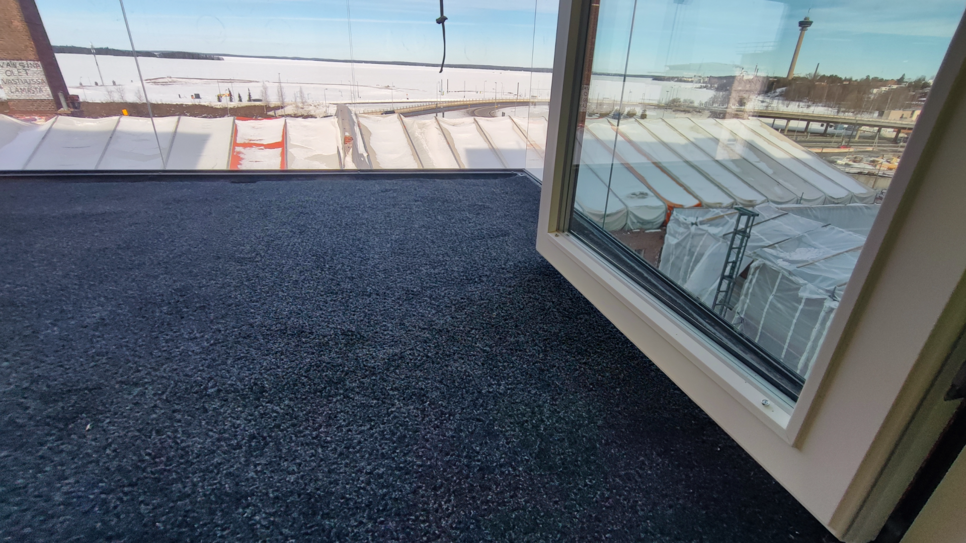 Tampereen kohteen maisemat olivat todella näyttävät ja parvekemattojen ansiosta pääsevät myös asukkaat ihailemaan maisemia mukavalla parvekkeella.