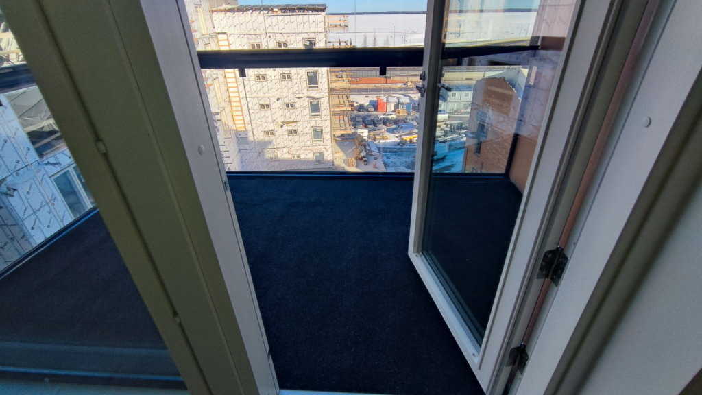 Kun parveke on osa asuntoa kuuluu sen myös näyttää siltä! Tämän takia meidän pyydettiinkin asentamaan kohteeseen parvekematot. Parvekematoksi valikoitui Green parvekematto joka on suosituin matto rakennusliikkeiden kesken. Sen hinta sekä laatu ovat kohdallaan ja värejä löytyy monia
