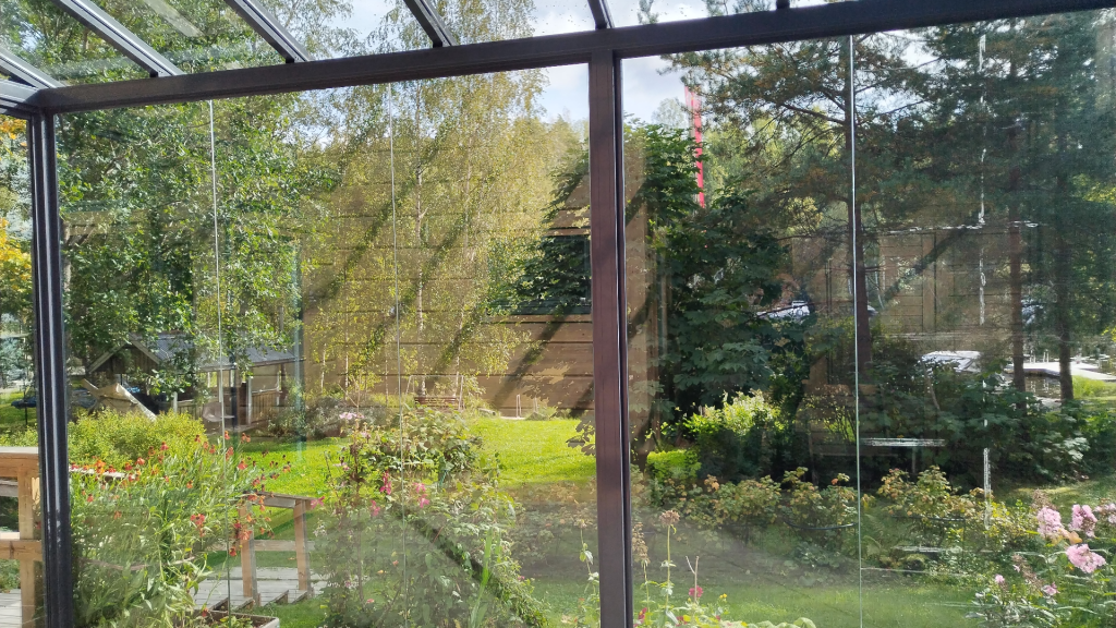 Kohteeseen toimitettiin alumiinirunkoinen lasiterassi kirkkailla turvalaseilla