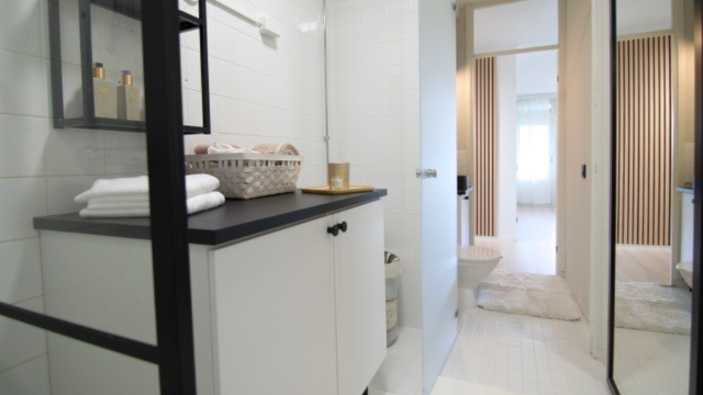 Asiakkaan asunnossa oli flippausprojekti, johon Maakunnan Lasi oy toimitti tiukalla aikataululla seuraavat ratkaisut asennettuna: Tilanjako-ovet mustilla kehyksillä, kirkkaalla lasilla ja jakopienoilla huonetilan jakamiseksi. Pesuhuoneeseen asennettiin vanhaan puukarmiin kokolasinen satiinilasiovi, jolloin vanhaa karmia ei tarvinnut purkaa pois. Lisäksi pesutilaan asennettiin mustakehyksinen suihkuseinä ja peili, joka tuli vanhan oviaukon eteen. Kokonaisuus sisälsi mitoituksen, suunnittelun ja asennuksen kohteessa. Asiakkaan palaute oli seuraava; Olin todella tyytyväinen toimituksen nopeuteen! Tuote saapui täsmälleen luvatussa ajassa, mikä helpotti suunnitelmien tekemistä ja projektin edistymistä ilman turhia viivästyksiä.