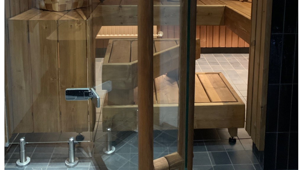 Asiakkaalle asennettiin saunan lasiseinä mittatilaustyönä