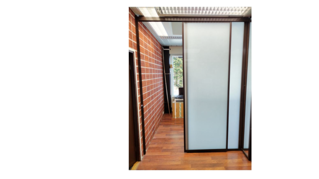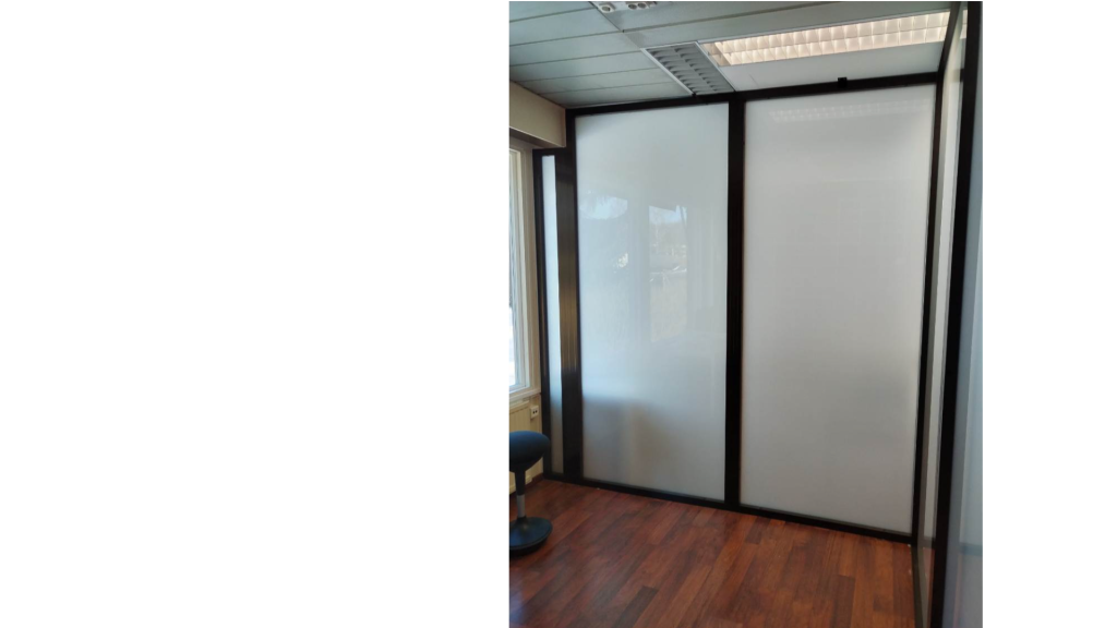 Asiakkaan remonttikohteeseen asennettiin mittojen mukaan toimiston lasiseinät, jotka koostui kiinteistä lasiseinistä ja yläkantavasta liukuovesta opaalilaseilla. Isompaan tilaan toteutettiin tällä tavoin toimistohuone, jossa opaalilasien ansiosta saadaan oma eriytetty tila. Toimiston lasiseinät on usein myös ääntäeristäviä, jolloin kokousten läpivienti onnistuu helposti