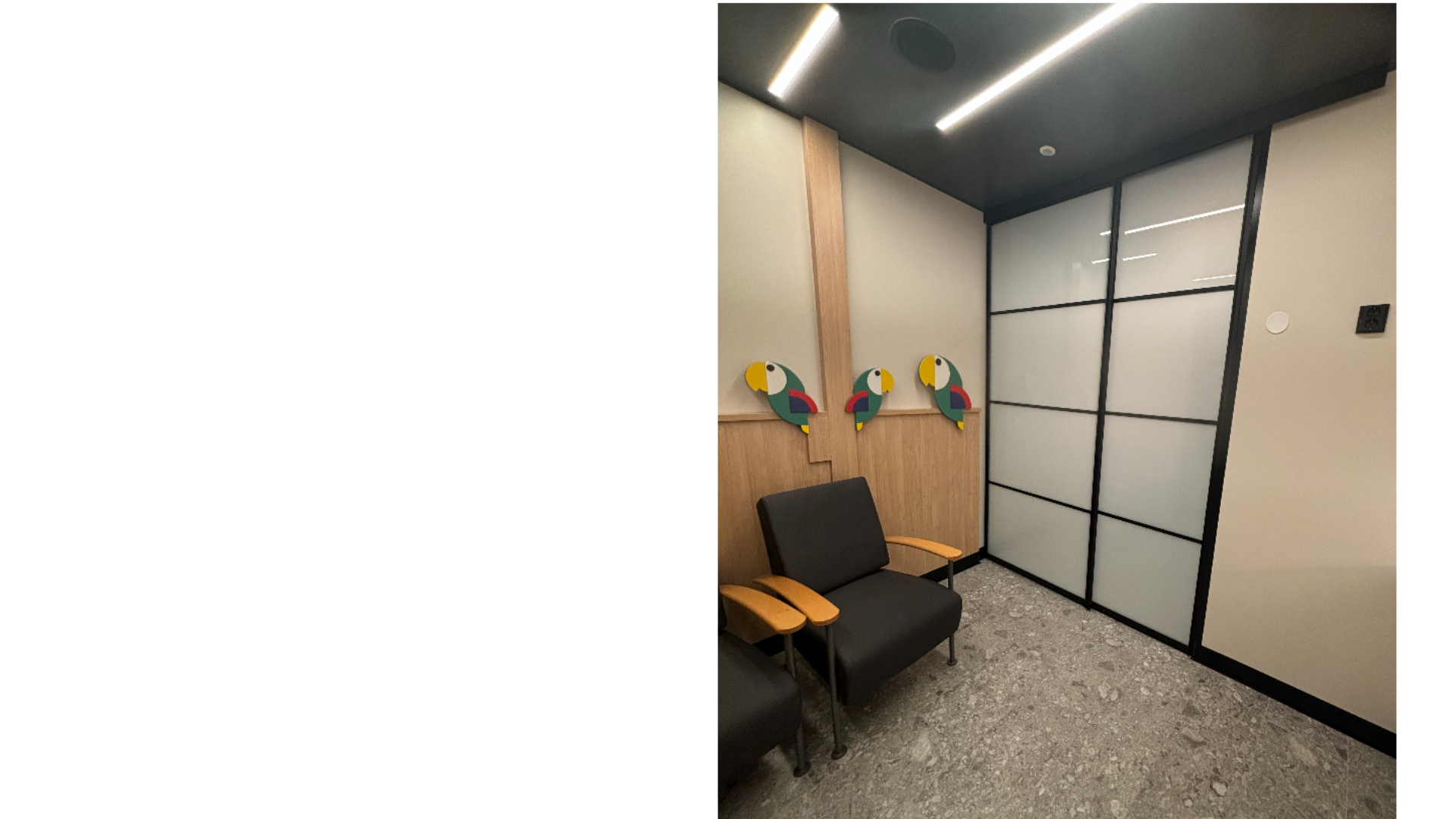 Kohteeseen toimitettiin lasiliukuovi ja kiinteä lasiseinä erottamaan lasten hoitotila muusta wc-tilasta