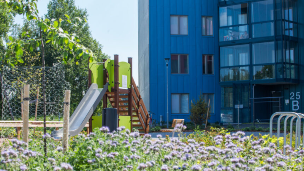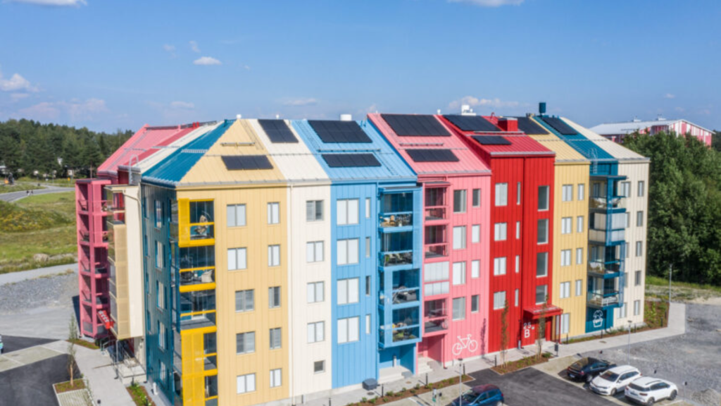 Värikäs ja rohkea kerrostalo Pirkkalaan – Metehe Konesaumalla näyttävä lopputulos ja PUR-pinnoitteella pitkä käyttöikä.