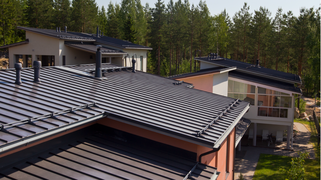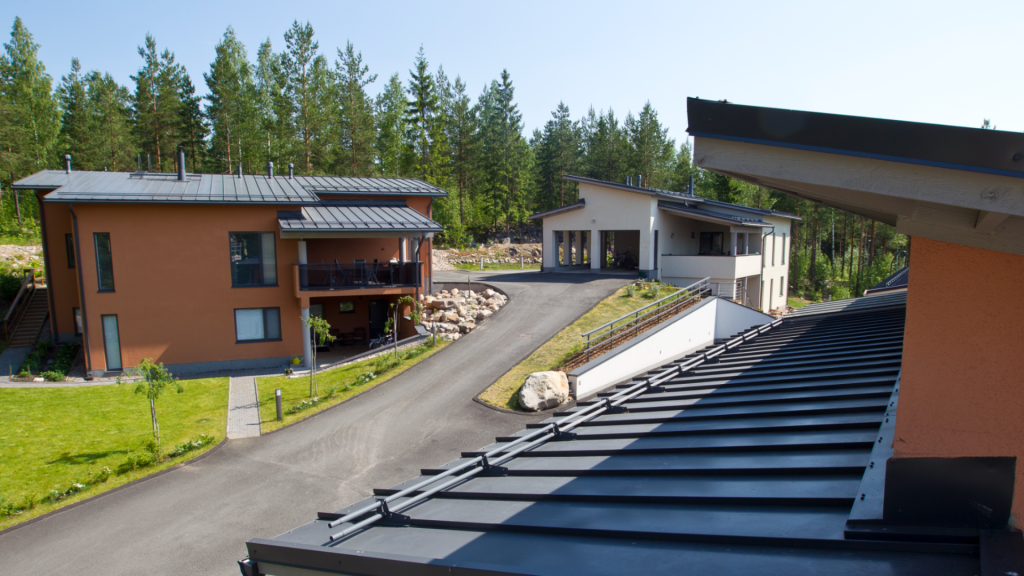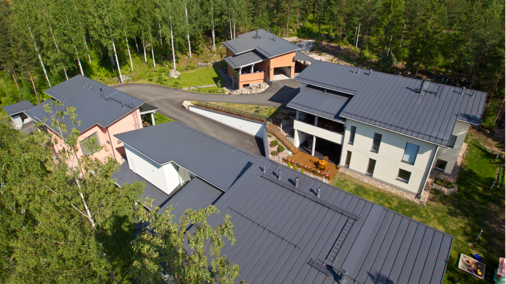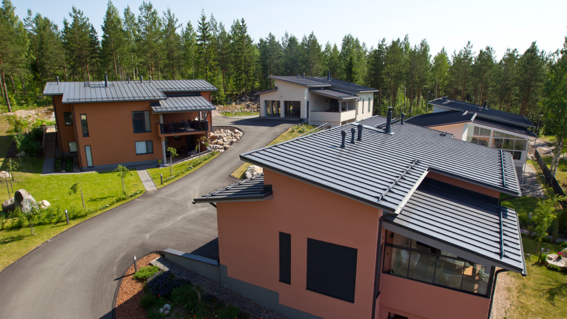 Hyvinkään Martissa sijaitseva, vuonna 2006 valmistunut asunto-osakeyhtiö Kuutamonrinne sai alkunsa neljän kaveruksen yhteisestä visiosta: rakentaa viihtyisä ja toimiva asuinympäristö, jossa neljä erillistä taloa muodostavat yhtenäisen asunto-osakeyhtiön. Kohteessa käytettiin Metehe Rivikatto -profiilia PUR-pinnoitteella tyylikkäässä tummanharmaassa värissä (RR 23). Yhtenäinen ilme viimeisteltiin saman sävyisillä listoilla, kattoturvatuotteilla sekä läpivienneillä. Myös sadevesijärjestelmä toteutettiin samassa värissä, mikä sitoo kokonaisuuden harmoniseksi ja huolitelluksi. Lopputuloksena syntyi toimiva ja visuaalisesti yhtenäinen kattokokonaisuus, joka istuu luontevasti alueen ilmeeseen. Kuutamonrinteen kattoratkaisu osoittaa, kuinka laadukkailla materiaaleilla ja huolellisella suunnittelulla voidaan saavuttaa sekä kestävä että esteettisesti miellyttävä lopputulos, joka palvelee asukkaita pitkälle tulevaisuuteen.