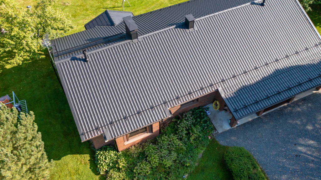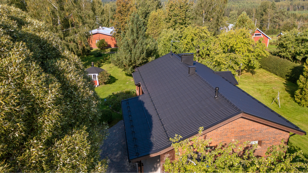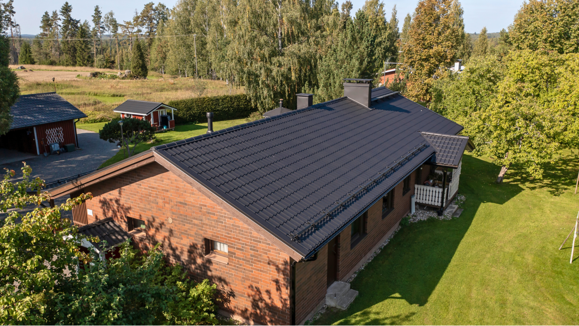 Lappeenrannassa, rauhallisella alueella sijaitseva omakotitalo sai Kymen Kattokeskuksen toteuttamassa kattoremontissa uuden peltikaton Metehe Classic -tiilikuviopellistä.