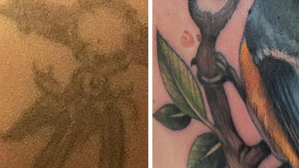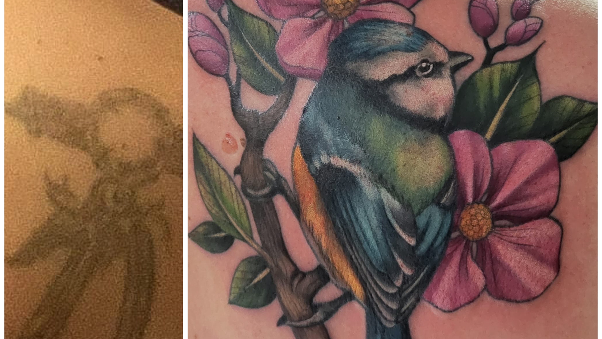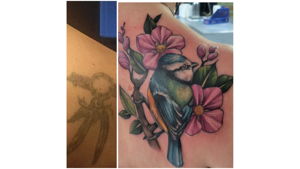 Asiakkaan olkapäähän kaksikymmentä vuotta sitten tehty unisieppari oli haalistunut ja menettänyt voimaansa – niin visuaalisesti kuin henkisesti. Uuden elämänvaiheen myötä sinitiainen oli noussut hänen henkilökohtaiseksi symbolikseen: pienenä, mutta rohkeana kulkijana, joka tuo iloa ja valoa synkimpäänkin hetkeen. O.S.M.A Lifen Olivian taitava peittotatuointi muutti tämän tarinan todeksi. Kukat ja sinitiainen sulautuivat harmoniseksi kuvaksi, joka ei ainoastaan peittänyt vanhaa, vaan myös antoi tilalle aivan uuden identiteetin. Tatuoinnin valmistuttua asiakas itki – mutta ei surusta, vaan siitä, että hän tunsi vihdoin tatuoinnin olevan osa hänen todellista itseään. Tatuointi ei ole enää muisto entisestä – se on merkki siitä, kuka hän on nyt.