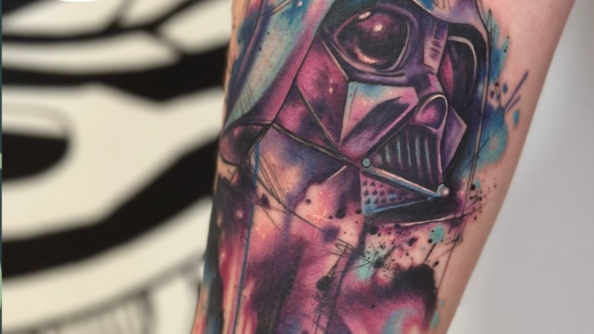 06 / 2025 Keskikokoiset tatuointityötDARTH VADER - vesivärityylin tatuointi