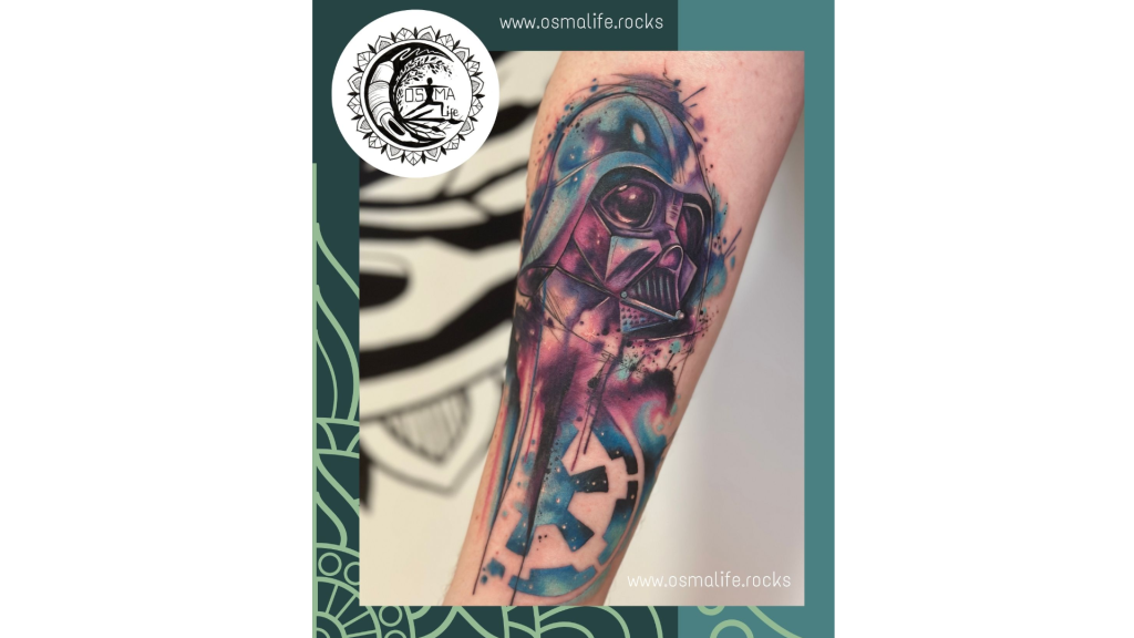 Darth Vader on suosikkihahmoni Star Wars -saagasta, erityisesti alkuperäisistä neljästä elokuvasta, joiden myötä hurahdin koko universumiin. Tässä projektissa pääsin toteuttamaan vesiväritekniikalla tehdyn värikkään Vader-tatuoinnin asiakkaan kyynärvarteen. Toteutukseen varattiin koko päivä, ja aikaa kului yhteensä noin kuusi tuntia, klo 11–17 – sisältäen työpisteen valmistelut, suunnittelun, mitoituksen, tatuoimisen ja suojaamisen. Asiakkaan kanssa käytiin etukäteen etäkonsultaatio Zoomin välityksellä, jossa toiveet ja suunnitelma käytiin yhdessä läpi. Molemmat olimme innoissamme projektista alusta loppuun. Darth Vaderin ikoninen hahmo, visuaalisuus ja tarinallinen syvyys tekevät hänestä kiehtovan aiheen myös tatuointitaiteessa. Vastaavan työn hinta on keskimäärin 650–900 € työn laajuudesta riippuen. Asiakas oli lopputulokseen niin tyytyväinen, että päätimme laajentaa työn koko käden mittaiseksi – projektista on siis tulevaisuudessa syntymässä täyspitkä Star Wars -aiheinen sleeve.