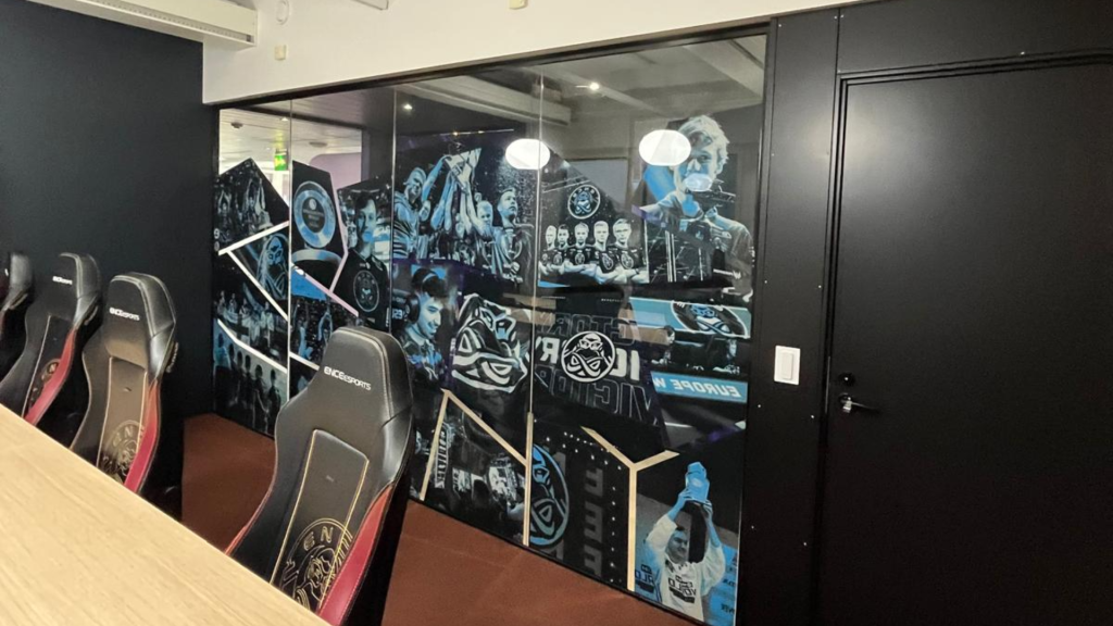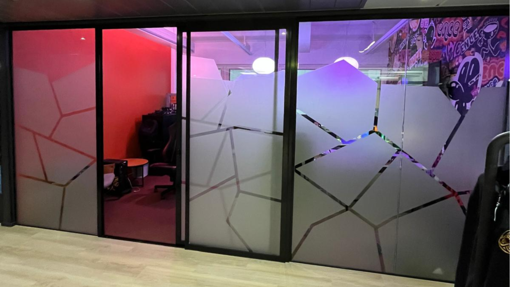 Asiakkaan uuden toimiston seinien, toimiston lasien ja ovien bränditeippaukset