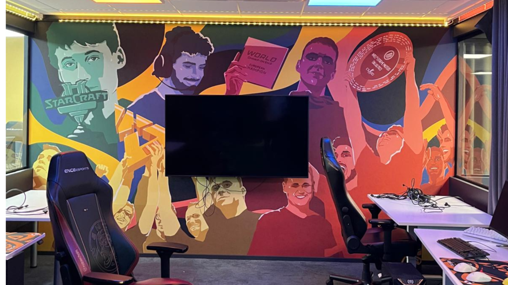 Ence muutti uuteen toimistoon Helsingissä ja halusi brändätä tilat oman näköisekseen. Seinät tapetoitiin tulostetulla ja liisteröidyllä tapetilla. Laseihin tehtiin 2 puoleiset kuvatulosteet, jotka näkyvät niin käytävälle kuin sisälle huoneisiin. Lisäksi osiin laseista laitettiin hiekkapuhalluskalvot tuomaan näkösuojaa ja ilmettä. Lisäksi oviin ja seinille teipattiin erinäisiä tekstejä ja logoja.