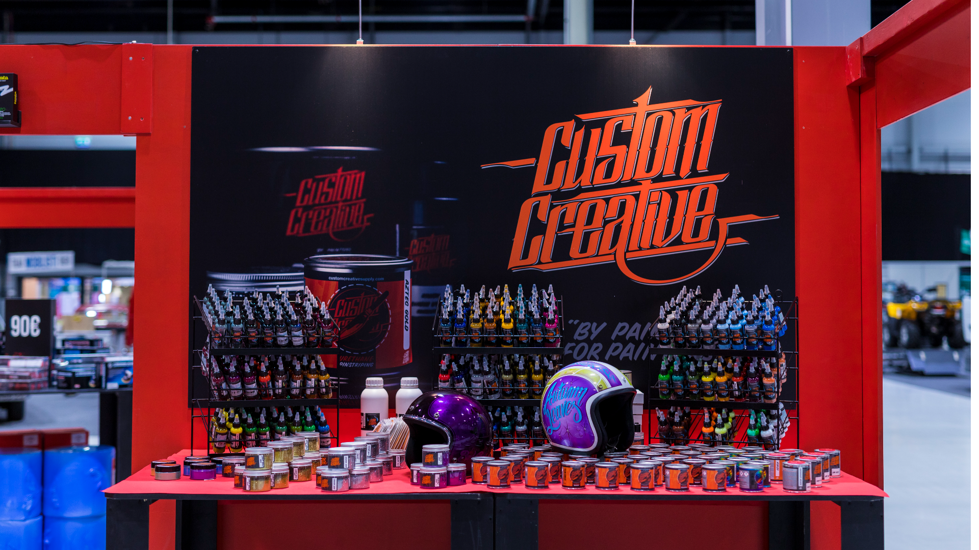 Suunnittelimme ja toteutimme asiakkaalle messuosastolle seinämainokset, sekä displaytuotteet