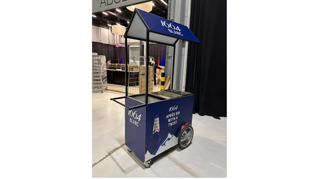 Ensin blancin tuotekuvilla ja logoilla suunniteltiin ilme teltalle, jonka hyväksymisen jälkeen tulostimme ja leikkasimme levyt. Tämän jälkeen suunniteltiin rakenne telttaan, koska teltan rakenteeseen ei saa ruuvata tai tehdä reikiä, tehtiin puusta + alumiinikoukuista runko levytykselle. Lisäksi brändittiin myyntikärry blancin kuosiin teippauksilla.