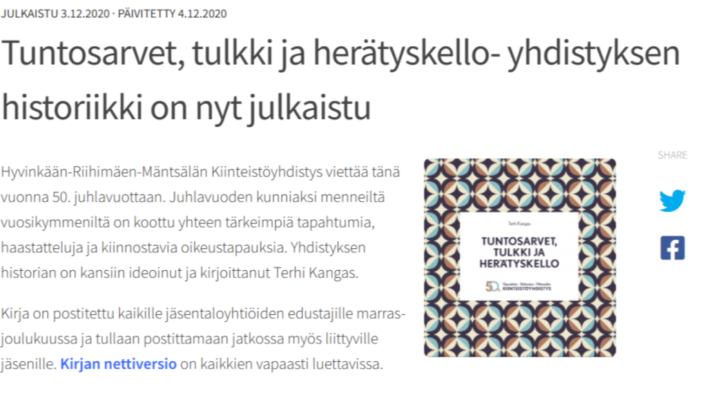 12 / 2020 Historiikit / painetut yritysjulkaisut50-vuotishistoriikki kiinteistöyhdistykselle syntyi lähes täysin ilman valokuvia