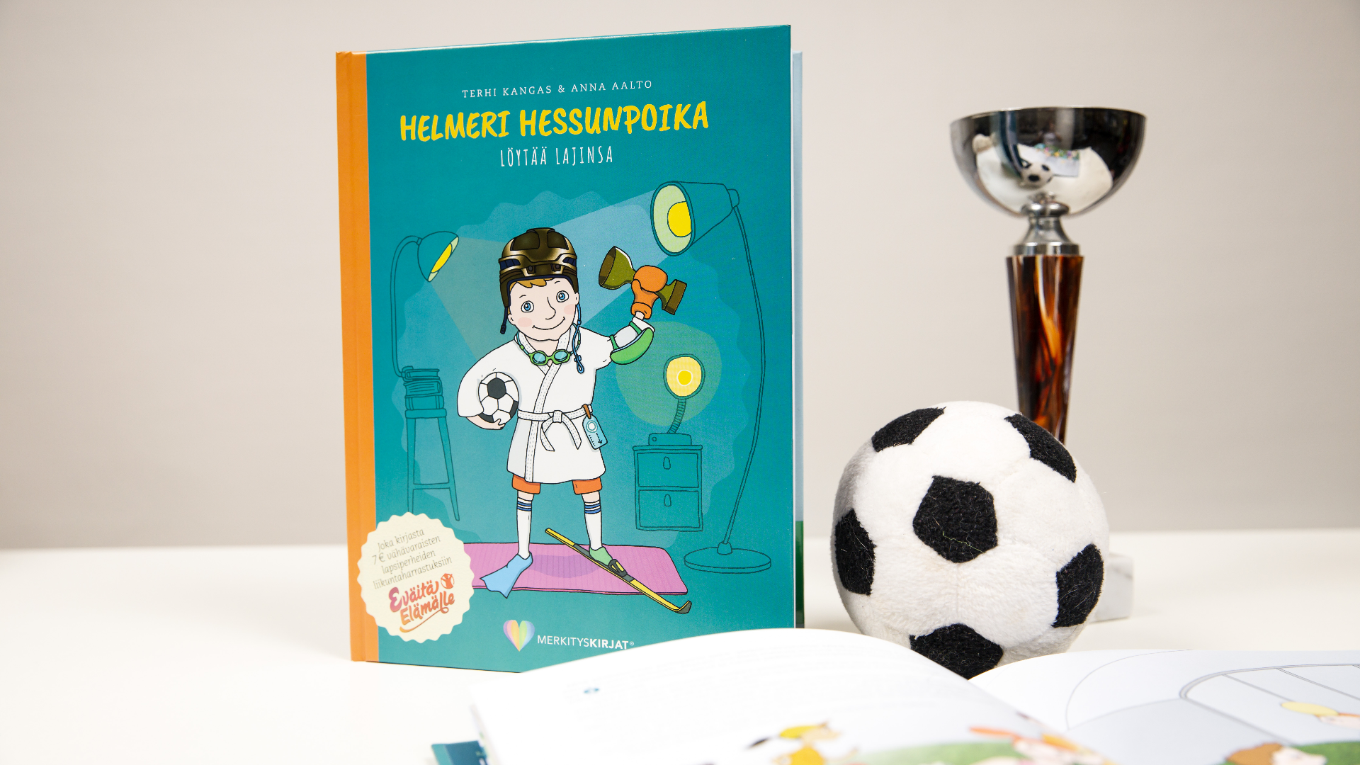 Helmerin ja Helgan isä on jälleen välkyllä tuulella. Hän päättää, että perheessä aloitetaan kuntoilu, sillä isä aikoo keväällä osallistua työkavereiden kanssa juoksutapahtumaan. Helga Hidalmiina innostuu jalkapallosta heti tutustumistreeneissä, mutta Helmeri istuu kentän laidalla surkeana. Hän ei pidä jalkapallosta, ei sitten yhtään. Mutta Helmeri Hessunpoika ei vähästä lannistu. Hän päättää rohkeasti kokeilla mahdollisimman erilaisia lajeja, sillä eiväthän kaikki mitenkään voi pitää samoista asioista. Aivan varmasti myös hänelle löytyy laji, joka tuntuu itsestä mukavalta. Ja juuri sellaistahan liikunnan tulee olla! Helmeri Hessunpoika löytää lajinsa on Merkityskirjojen toinen loppuunmyyty yhteisöllinen lastenkirja. Kirjamyynnillä kertyi yhteensä 5621 euroa vähävaraisten lapsiperheiden liikuntaharrastusten tueksi Pelastakaa Lapset ry:n Eväitä Elämälle -ohjelmaan. Merkityskirjat Oy oli kirjantekijöiden yhteinen yritys. Kirjatuotantoja voidaan nykyisin tehdä Toteuttamo Verbaalin kautta.