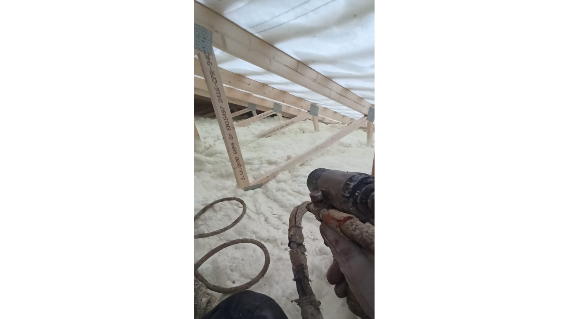 Viking Solutions Oy:n toimipisteen laajennusosa koki merkittävän päivityksen, kun sen yläpohja eristettiin kaksivaiheisesti, tavoitteena maksimaalinen tehokkuus ja mukavuus. Ensimmäisenä askeleena yläpohjaan ruiskutettiin kaasutiivistä uretaania, joka loi vankan höyrysulun, estäen kosteuden pääsyn rakenteisiin ja parantaen energiatehokkuutta. Tämä toimenpide takasi, että rakennuksen sisäilma pysyy kuivana ja terveellisenä. Toisena kerroksena lisättiin avoimen solun uretaania, joka toimii erinomaisena äänieristeenä. Tämä lisäkerros paransi merkittävästi toimiston akustiikkaa, vähentäen ulkoa tulevaa melua ja luoden rauhallisemman työympäristön. Tämä kaksikerroksinen eristysmenetelmä ei ainoastaan lisännyt toimiston mukavuutta ja käytännöllisyyttä, vaan myös osoittautui kustannustehokkaaksi ratkaisuksi pitkällä tähtäimellä.