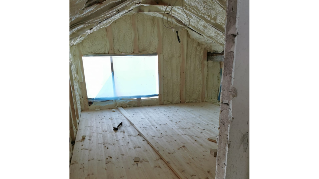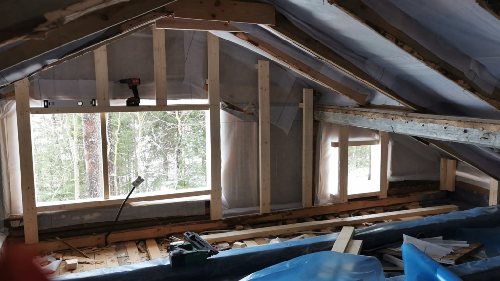 Kävimme purkamassa, eristämässä ja kasaamassa energiatehokkaan mökin. Nyt mökki pitää kylmän loitollaan ja tarvittaessa viileellä kelillä mökki pysyy viileänä vähällä energialla. Täällä meni uusiksi käytännössä kaikki. Eristys oli monimuotoisuuden takia haastavaa toteuttaa levyillä, mutta ruiskutettavalla eristeellä saatiin loistava lopputulos.